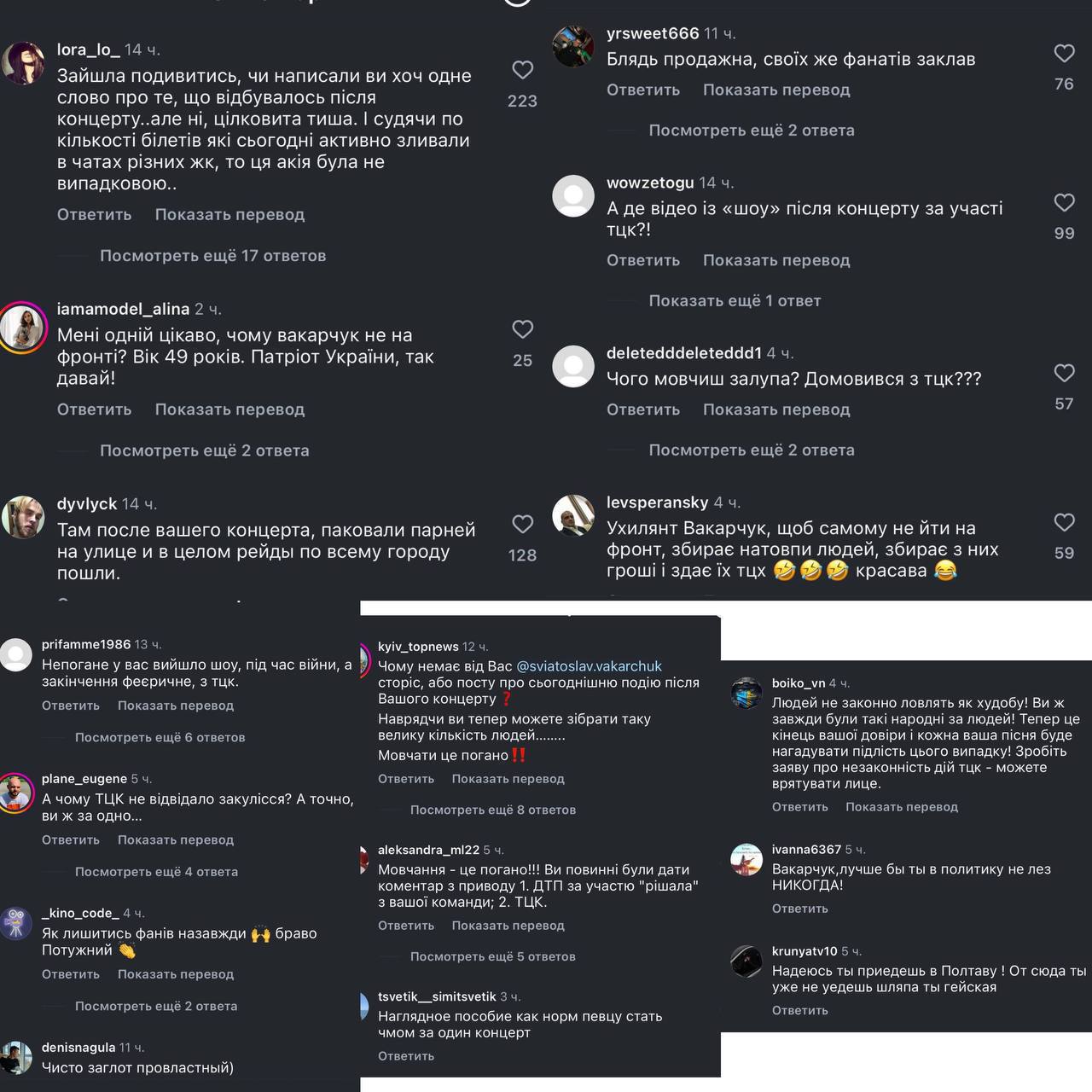 "Вакарчук уклонист", "Почему молчишь?", "Своих фанатов сдал!": в сети резко комментируют публикацию группы «Океан Эльзы» после того, как на выходе с их концерта ТЦК массово задерживали мужчин.