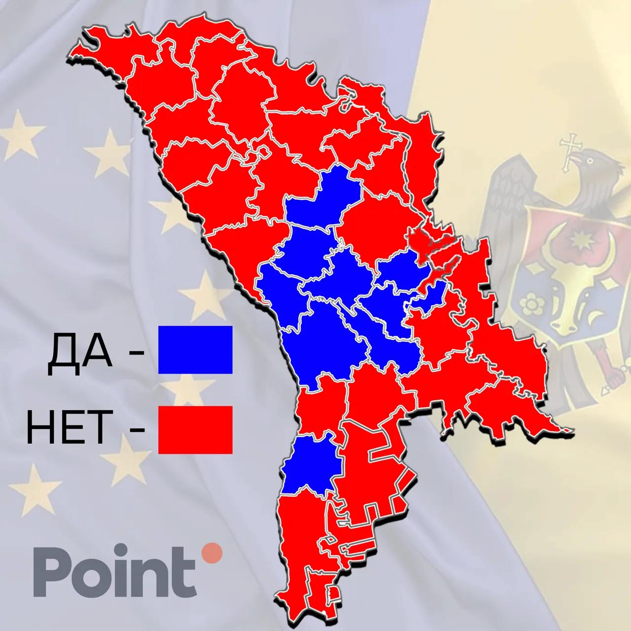 В большинстве районов Молдовы на референдуме было высказано несогласие с перспективой вступления в ЕС, хотя в целом с небольшим перевесом лидируют сторонники евроинтеграции.