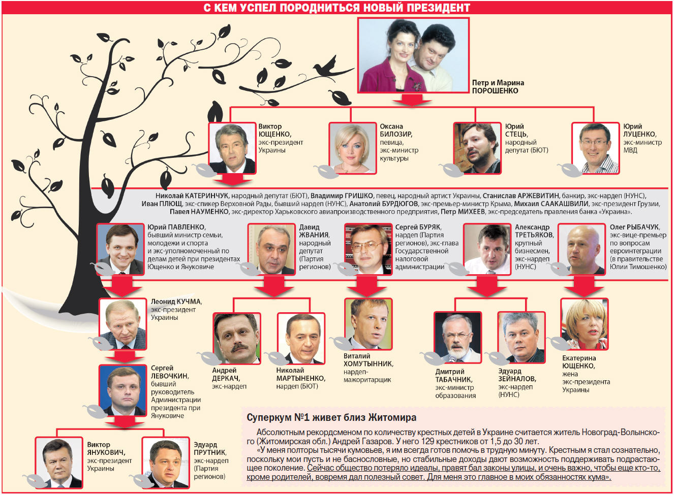 Есть надежда, что ответ на этот вопрос окажется отрицательным, потому что слишком уж раскидистая кумовская ветвь ведет от Порошенко не только к представителям нынешней власти, но и к экс-президенту Виктору Януковичу, и к экс-министру образования Дмитрию Табачнику…