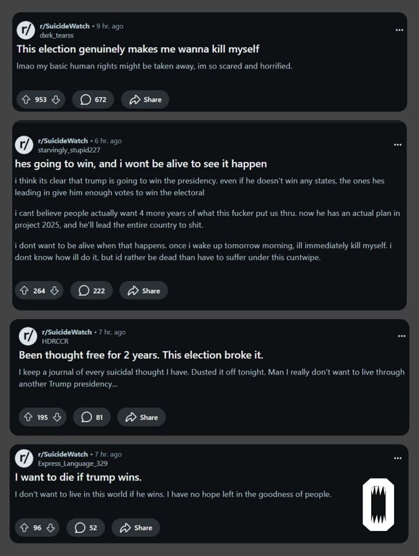 Из-за победы Трампа на выборах пользователи Reddit массово угрожают совершить суицид