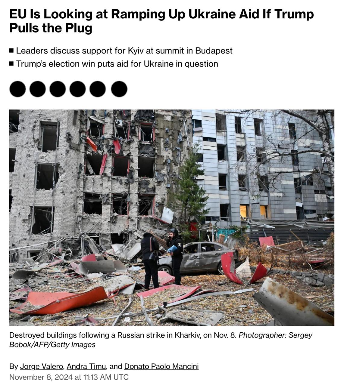 Кроме того, один из участников вчерашнего саммита ЕС в Будапеште указал, что "в первоначальных обсуждениях нет признаков значительного изменения тактики" в отношении Украины при Трампе.