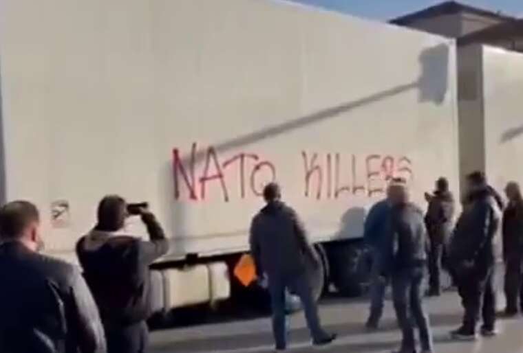 На одном из грузовиков они оставили надпись: «Убийцы из НАТО, отправляйтесь домой».