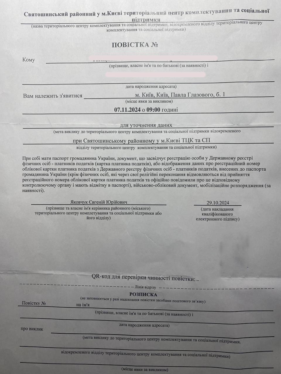 Более того, повестка может быть вручена сотрудником ТЦК из Шевченковского района Киева лицу, которое прописано в Дарницком.