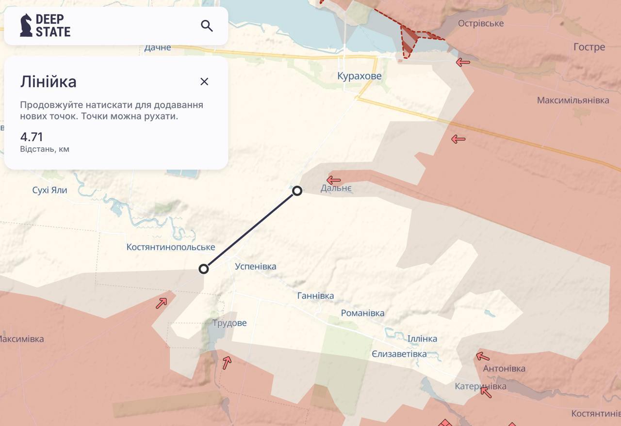 До окружения ВСУ южнее Курахово осталось менее 5 км, согласно карте Deep State.