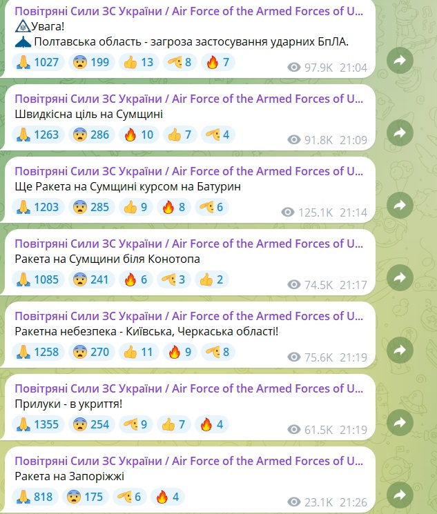 ПС предупреждали о ракетной опасности и вражеских БПЛА.