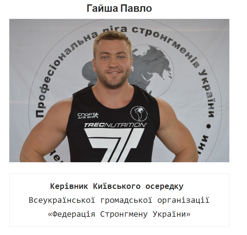 Еще один «свой» участников торгов – Павел Гайша . О нем упоминают на сайте Федерации стронгмена как о руководителе киевской ячейки. Гайша зарегистрировал ФЛП в августе 2018 года. Однако в первый раз на тендерах появился в октябре 2019 года.
