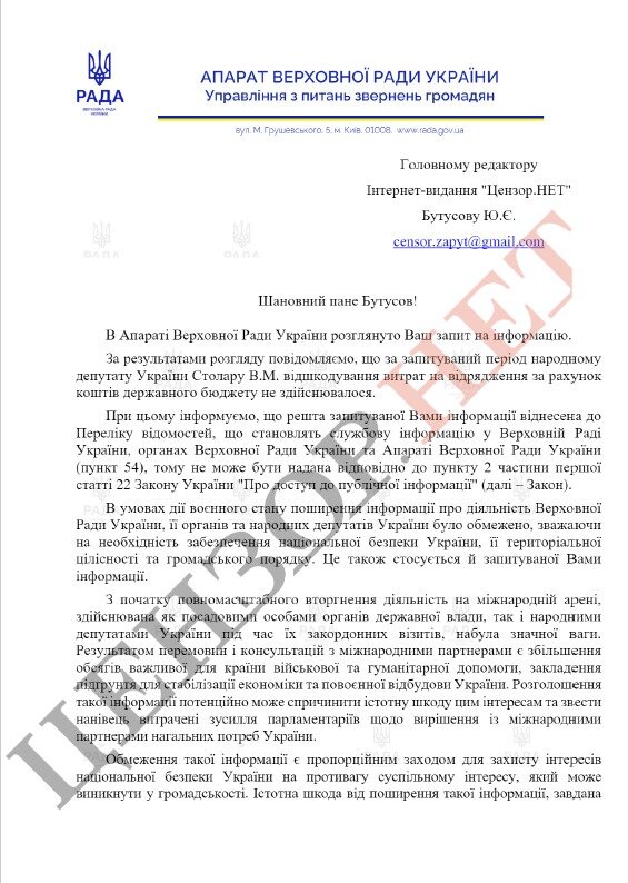По данным издания, за последние три года Столар всего 192 дня был на работе. К сожалению, предоставить официальное подтверждение этого аппарат Верховной Рады отказался.