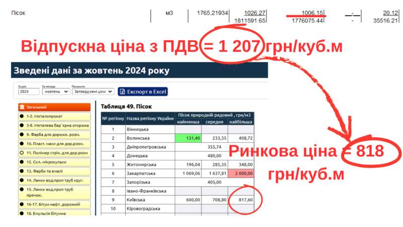 Песок учли по 1 207 грн . / куб . , а компания ИБП – по 711 грн/куб. 32-67% дешевле.