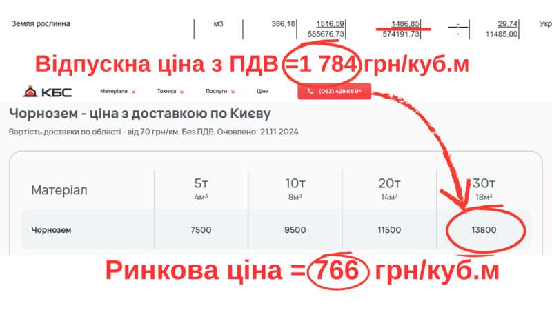 м. Фирма «КБС» предлагает чернозем по 766 грн/куб. , «Эктабуд» – от 400 грн/куб. , «БМС логистик» – по 400-450 грн/куб.