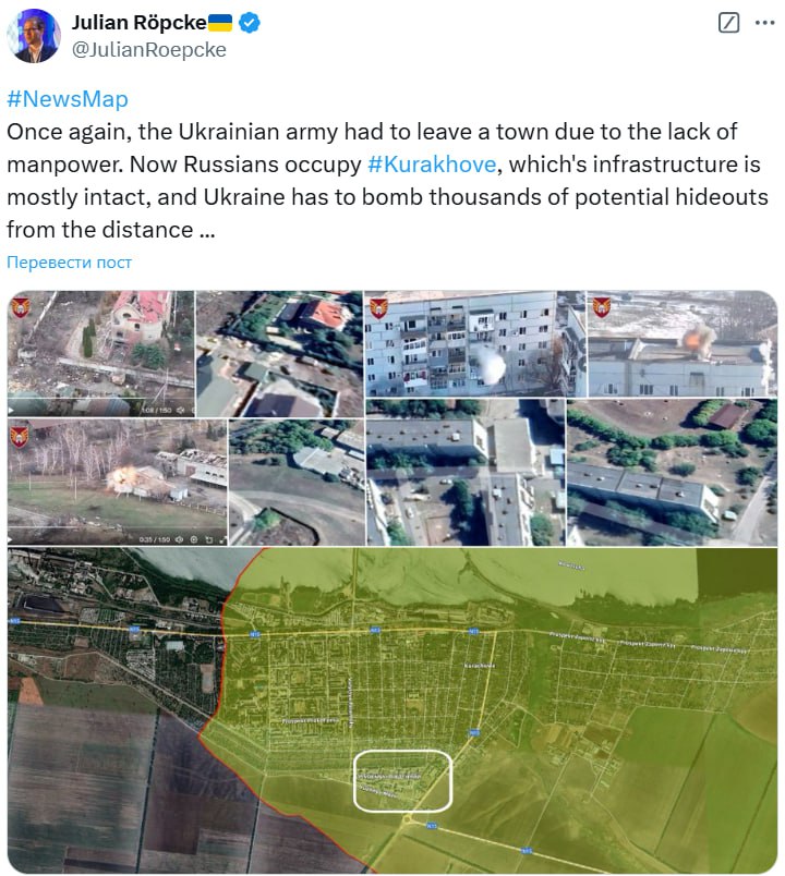 Об этом сообщил военный обозреватель Bild Юлиан Рёпке, уточнив, что украинской армии пришлось покинуть город из-за нехватки рабочей силы. По его словам, теперь российские войска оккупируют Курахово, а его инфраструктура осталась в основном неповрежденной.