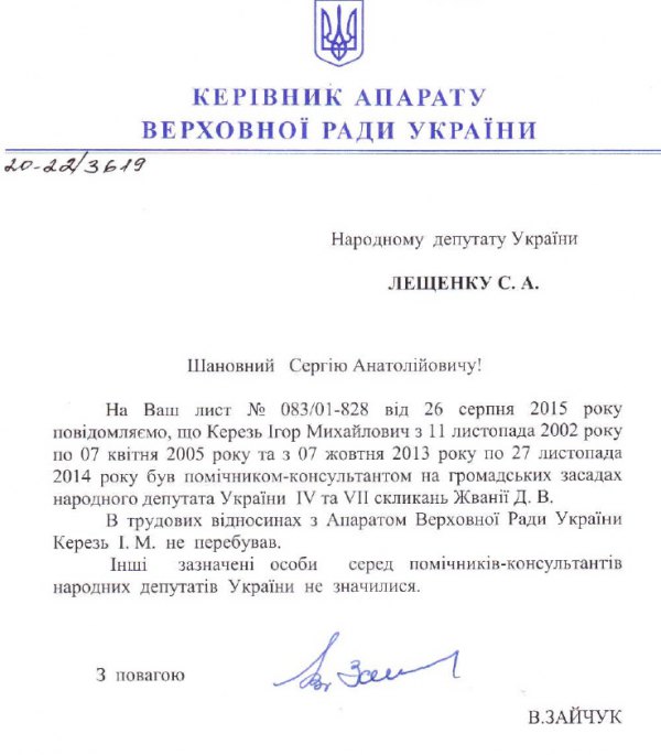 В то же время Игорь Керезь в двух созывах парламента был помощником бизнес-партнера Мартыненко Давида Жвании. Вот доказательства: