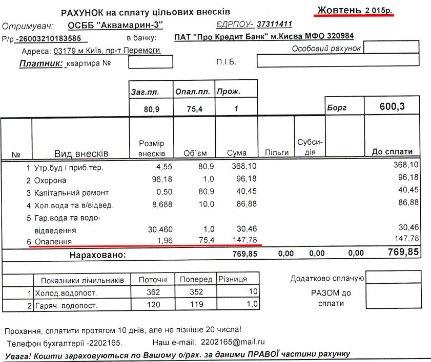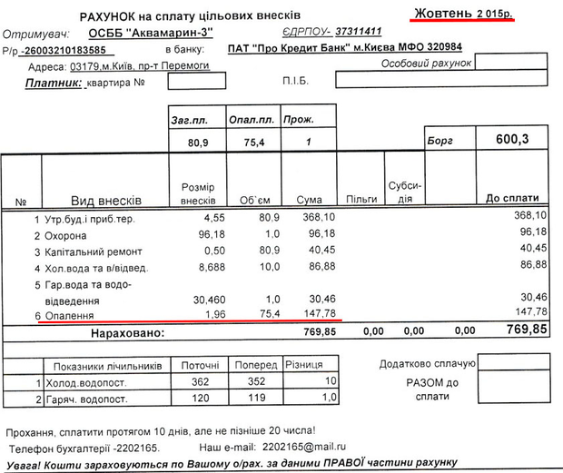 К примеру, за однокомнатную квартиру площадью 34 кв. м с доме серии БПС собщедомовым счетчиком за октябрь насчитали 185 грн.
