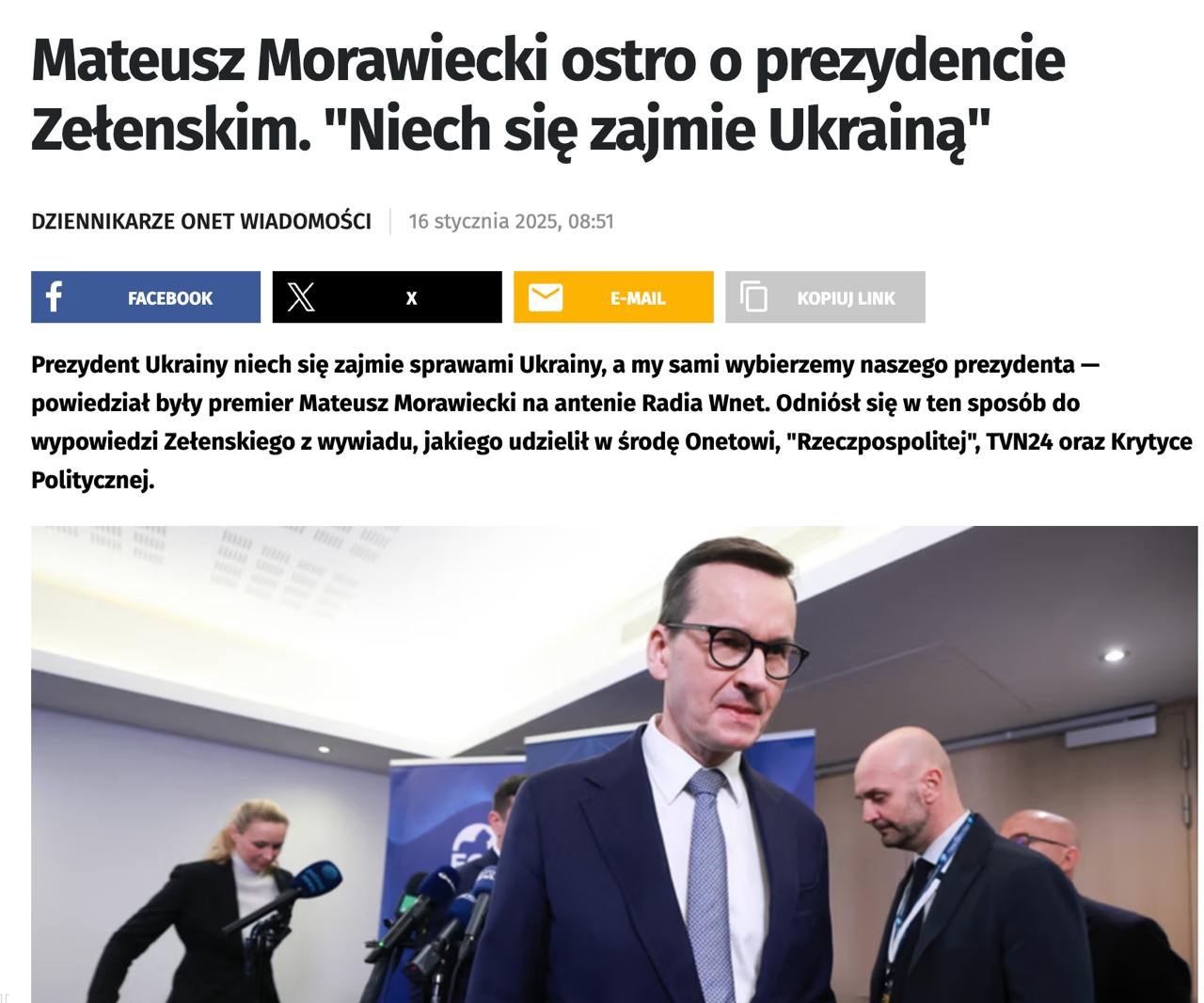 "Владимир Зеленский нагло агитирует на выборах в Польше в поддержку прогерманского Рафала Тшасковского и нападает на Кароля Навроцкого, который защищает интересы Польши. Украине не место в ЕС", — добавил депутат Януш Ковальский в социальной сети.