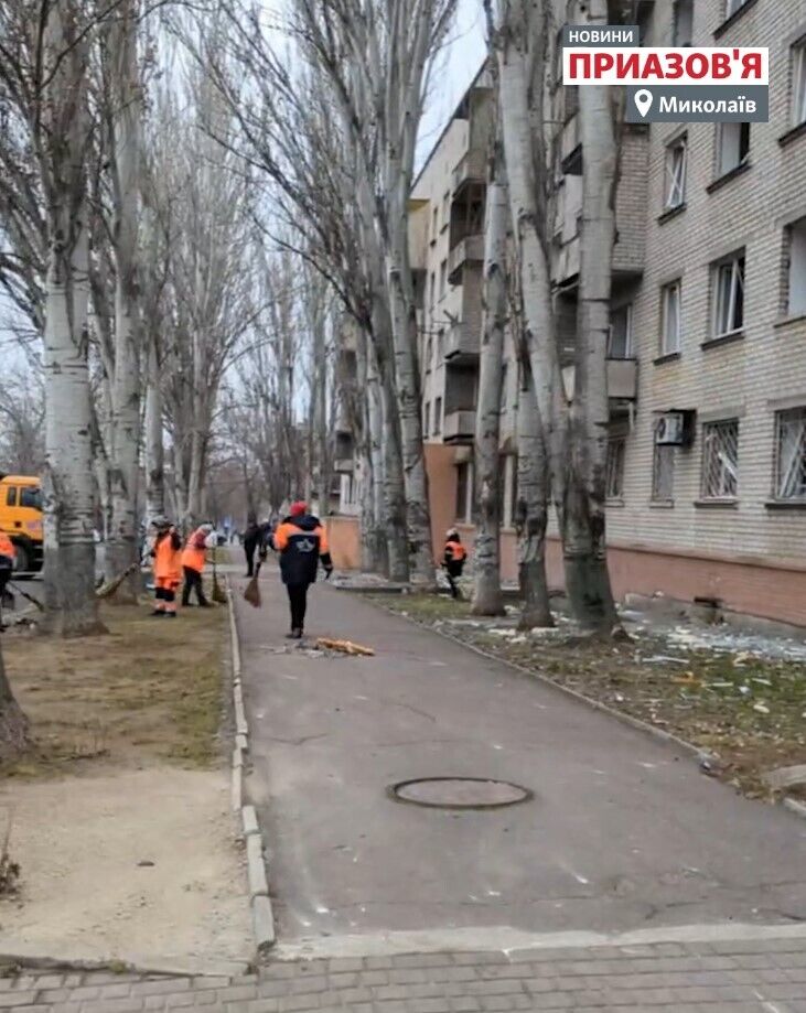 "Я выбежала на улицу, едва дверь открыла, потому что их взрывной волной вывернуло... Побежали что-нибудь делать. Все живы, все здоровы. Девушкам дверь так перекосило, что они через форточку вылезали", – описывает жительница Николаева ночные события.