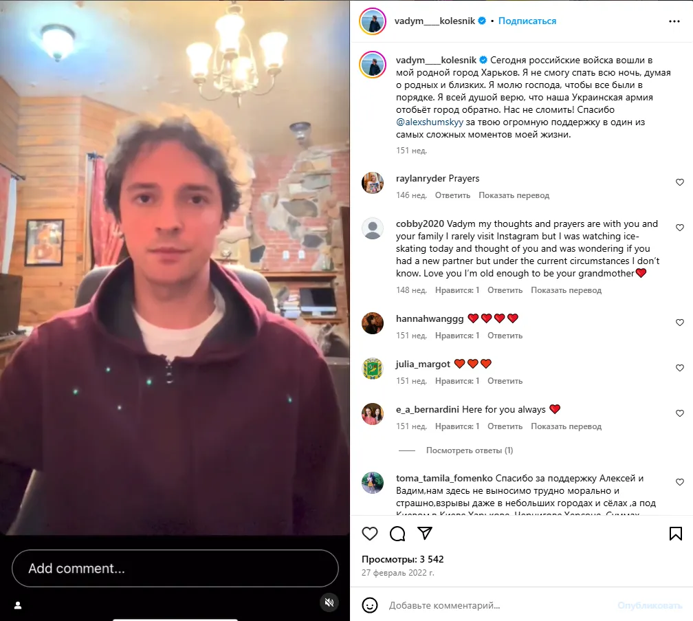 Двукратный олимпийский чемпион Дмитрий Васильев выразил свое возмущение по поводу слов украинско-американского фигуриста Вадима Колесника, который призвал не допустить возвращение россиян на международные турниры. Сторонник диктаторского режима Владимира Путина цинично назвал нашего соотечественника из Харькова сумасшедшим.