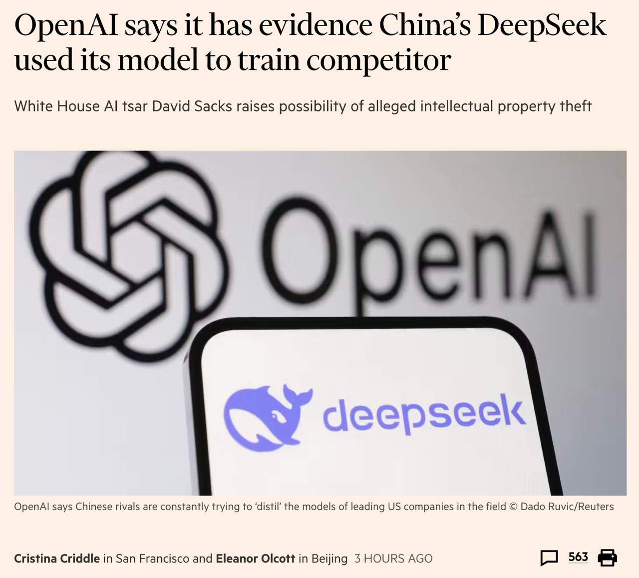 OpenAI обвиняет китайскую компанию DeepSeek в краже данных с помощью технологии "дистилляции"