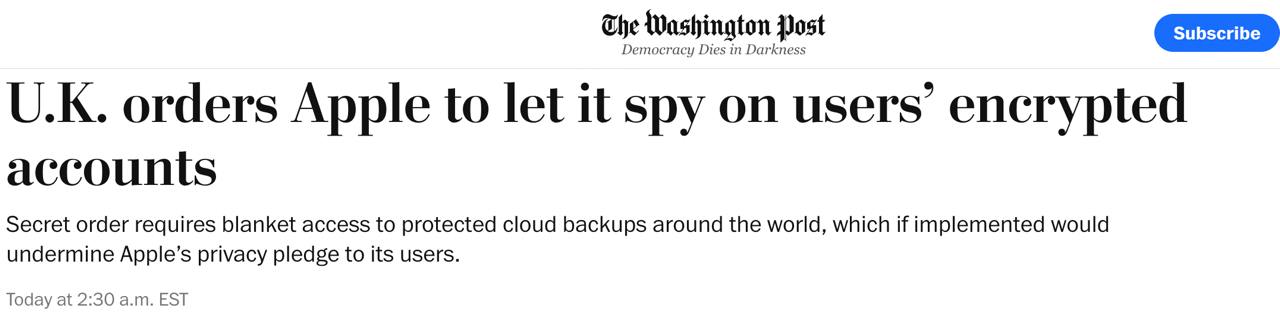 WP: Британия просит Apple разрешить ей шпионить за зашифрованными аккаунтами