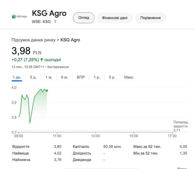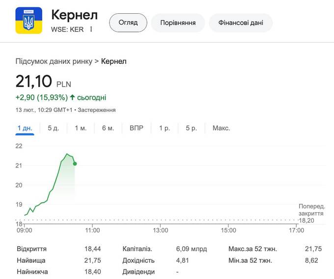 Кроме того, акции KSG Agro подорожали на 4,85%, а крупнейшего производителя масла «Кернел» – на 7,91%.