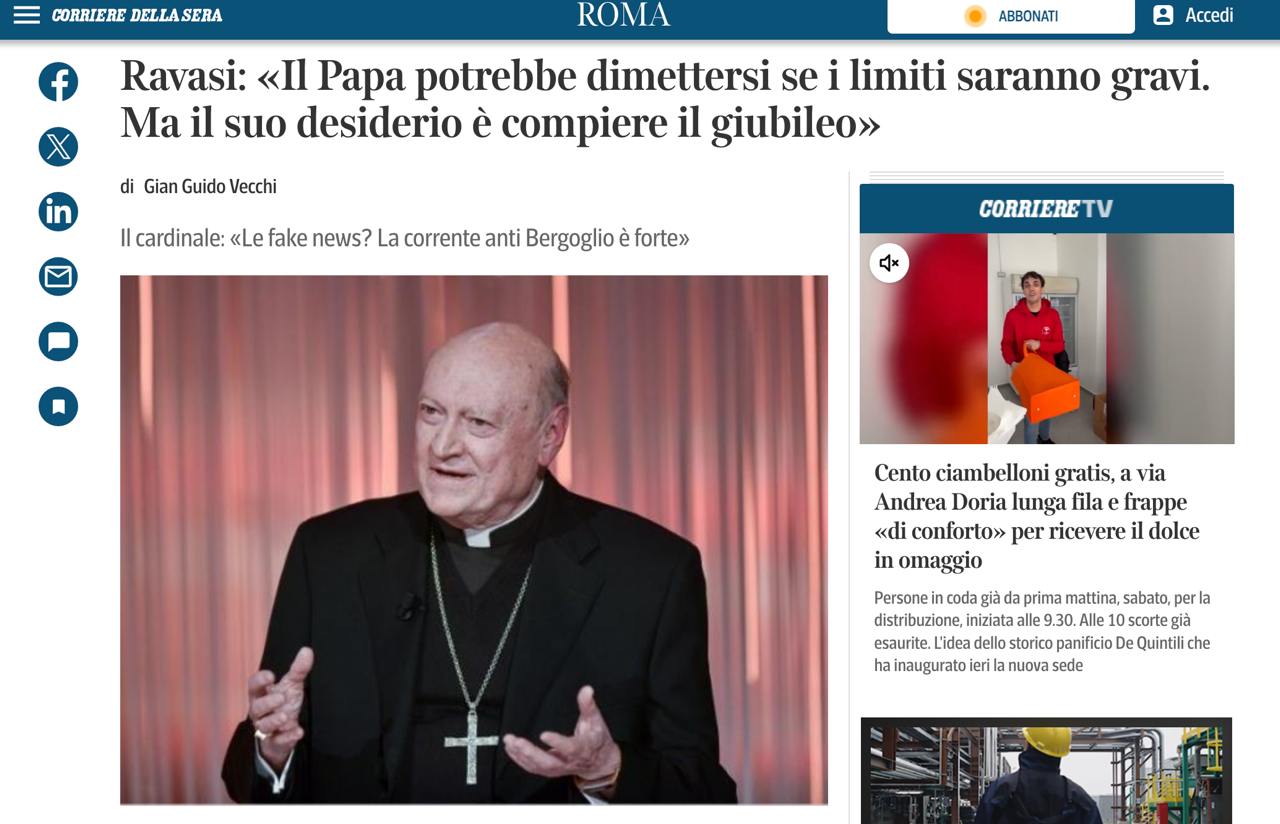 Папа римский Франциск может уйти с поста по состоянию здоровья, сообщил кардинал Джанфранко Равази в беседе с Corriere della Sera.