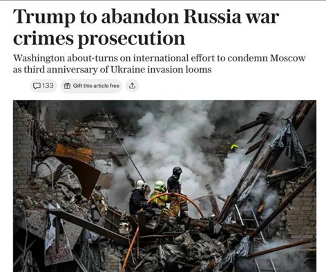 Президент США Дональд Трамп не намерен привлекать к ответственности Владимира Путина и Российскую Федерацию за совершенные военные преступления в Украине.