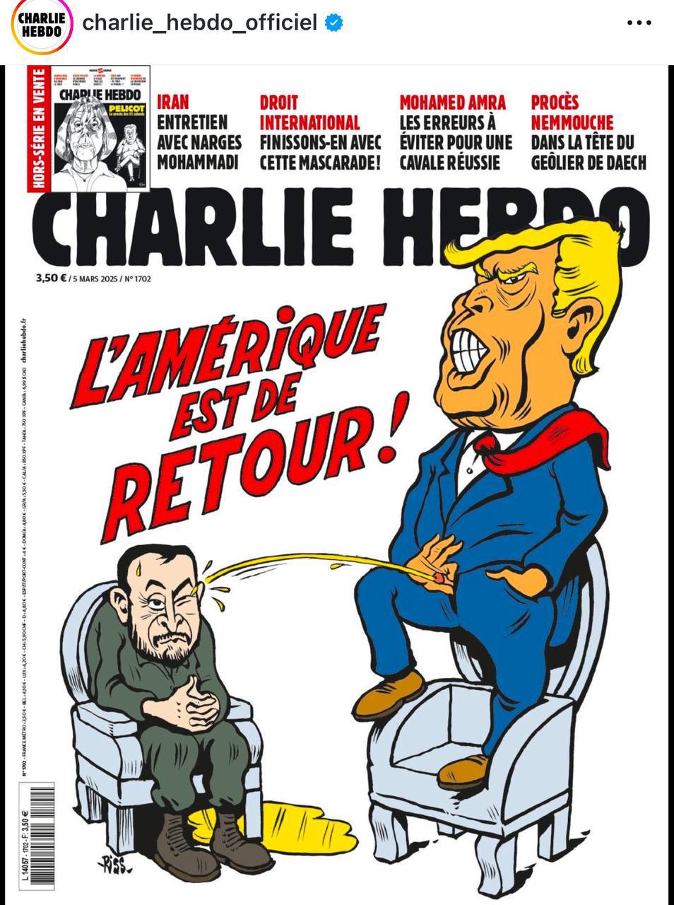 Charlie Hebdo высмеял встречу Трампа и Зеленского: «Америка вернулась»