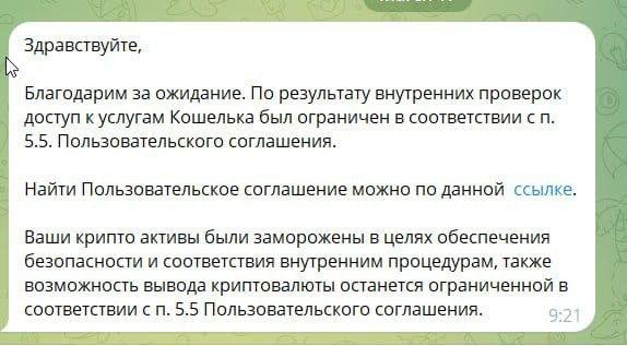По словам Чебыкина, его криптовалюта была заблокирована в «Кошельке» на следующий день после того, как он попал в список «экстремистов» Росфинмониторинга. Вывести средства «Кошелек» не позволил.