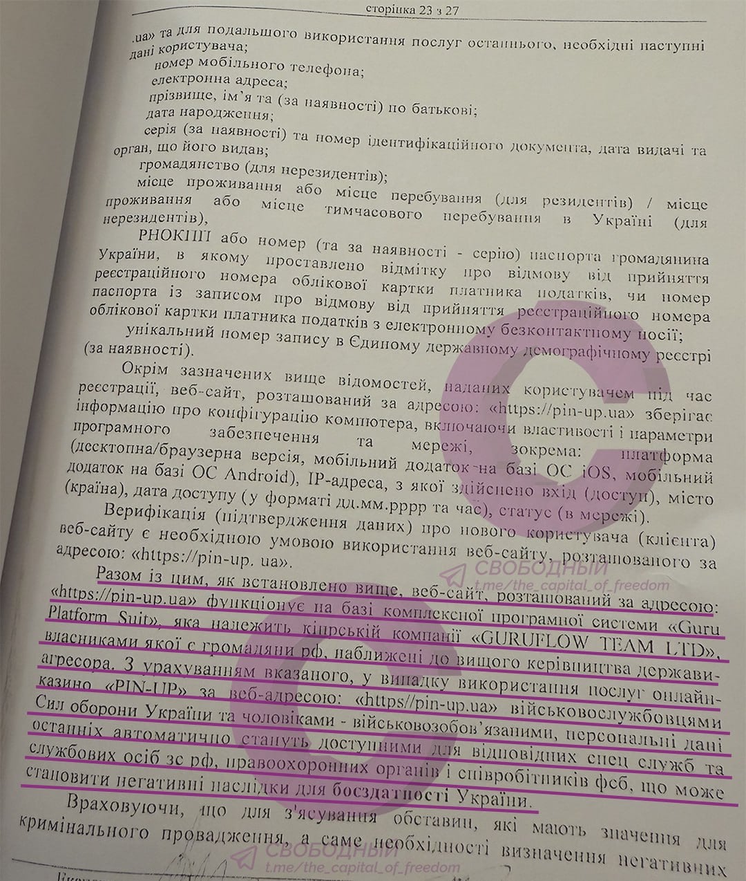 Казино Pin-UP оказалось частью российской информационной сети для отслеживания украинцев