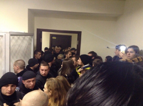 Активісти не давали конвою забрати підозрюваного Андрія Медведька із залу суду. Вони вимагали, щоб до суду приїхав генеральний прокурор Віктор Шокін або його представник.