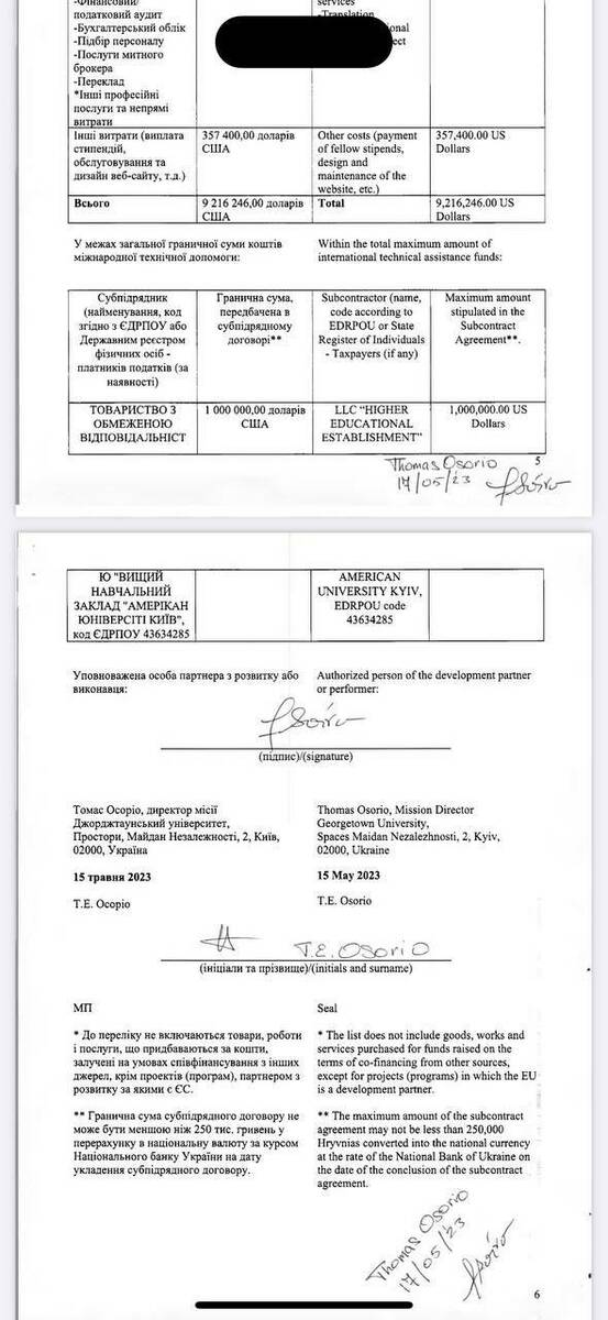 1 000 000 долларов США было выделено ООО "Американ Юниверсити Киев";