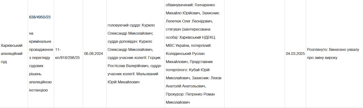 Через три месяца, как и сообщалось в Детектив-Info, суд отпустил "Гончарика" под залог, и он исчез из поля зрения. Безуспешные поиски Гончаренко продолжались более года, пока 17 мая 2023 года его не задержали в Голосеевском районе Киева. В июне 2024 года суд первой инстанции приговорил Михаила Юрьевича к 8 годам заключения с конфискацией имущества.