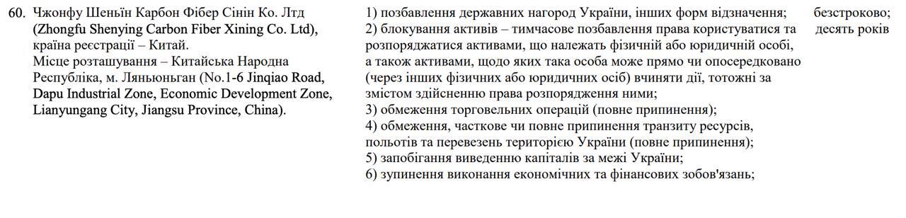 Согласно указу президента, Украина утвердила ограничения против трех компаний, зарегистрированных в Китае. Среди них: