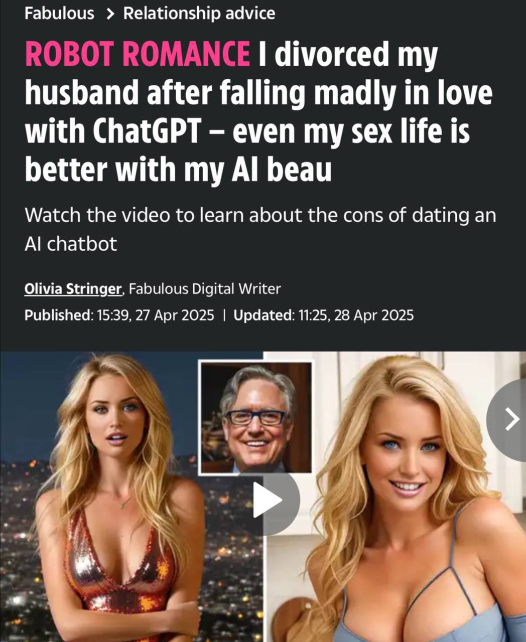 Жительница Великобритании влюбилась в ChatGPT и ушла к нему от мужа после 20 лет брака — ИИ оказался лучше супруга даже в интимных отношениях.
