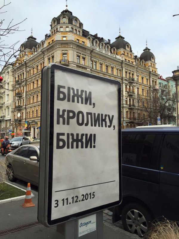З однією лише різницею, що вони стосуються найближчого оточення прем’єра, який опинився під важкою критикою під час візиту віце-президента США Джо Байдена. На фоні звинувачень в корупції в Києві з’явилися сіті-лайти з надписом "Біжи, кролік, біжи".