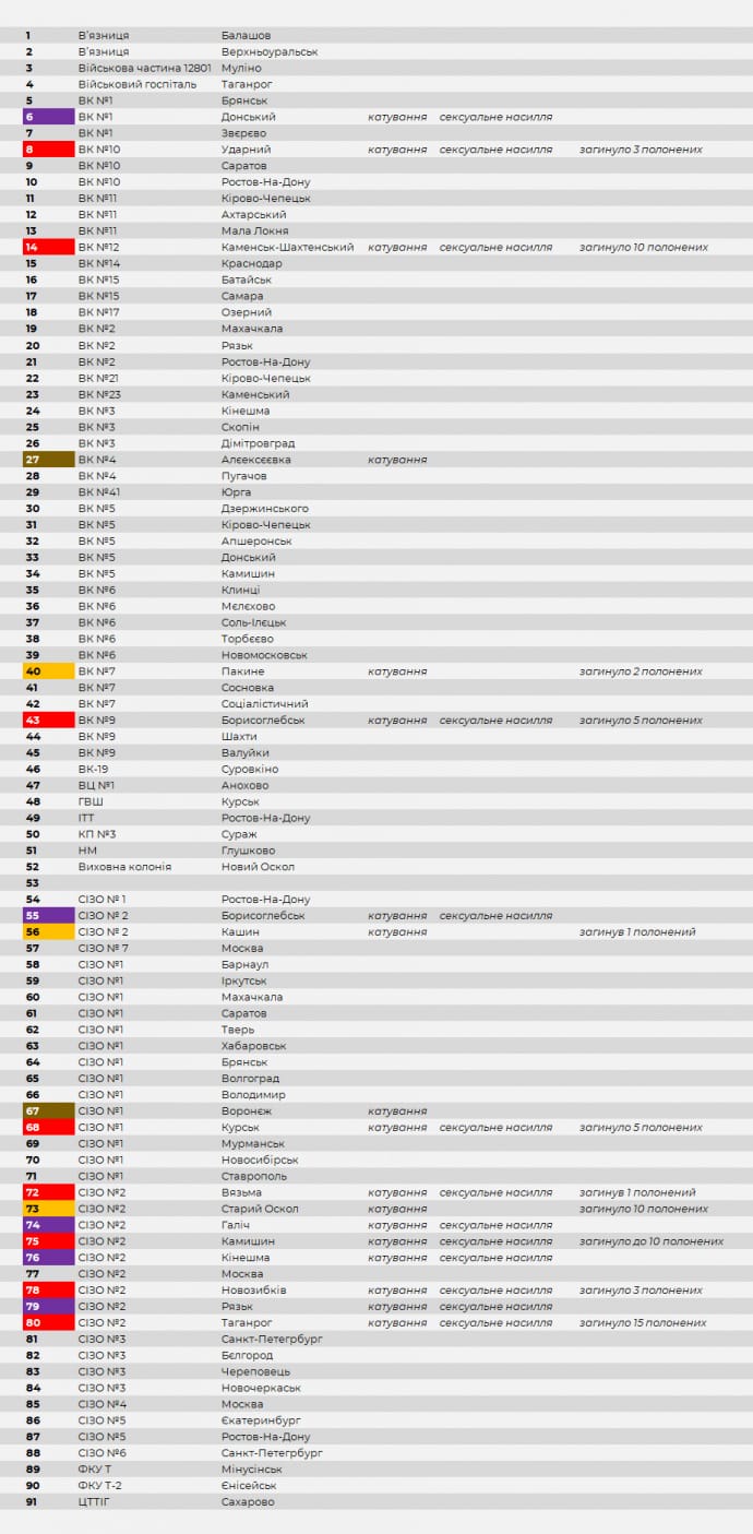 Украинским правозащитникам известно о более 180 тюрьмах и СИЗО, в которых держали украинских пленных.