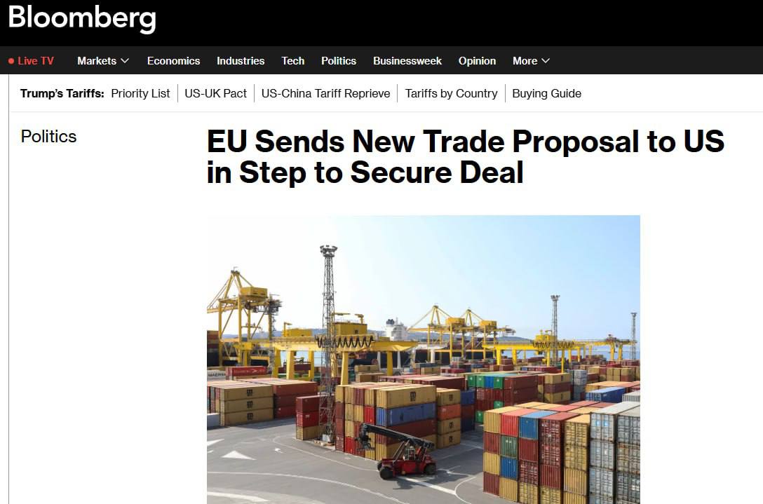 Bloomberg: Евросоюз передал США новый документ с предложениями по торговому соглашению