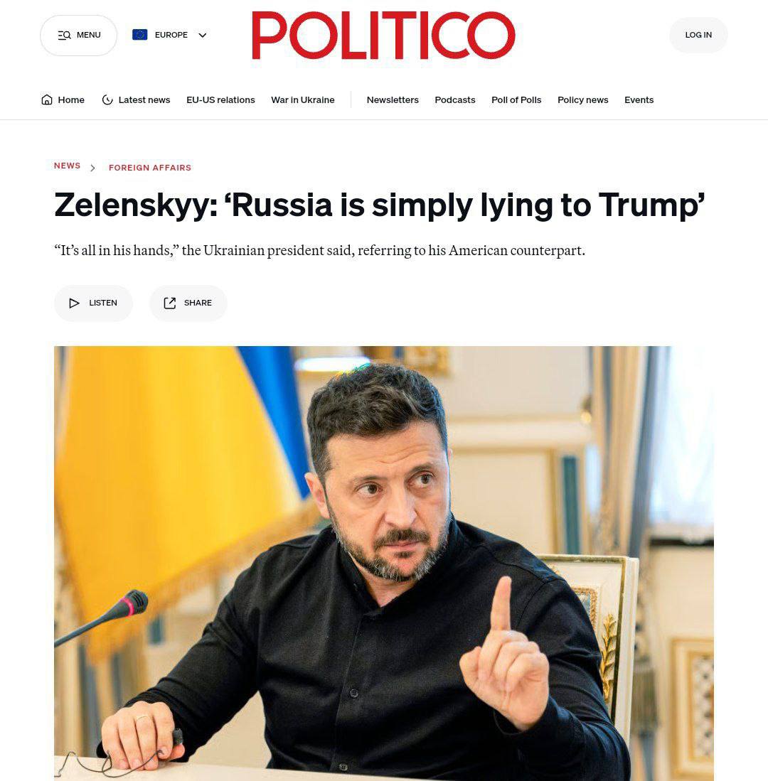 "Трамп видит, что российская сторона не совсем честна относительно войны. Россия неискренна", — подчеркнул президент Украины.
