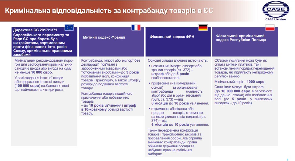 Во время Великой войны Верховная Рада вернула криминализацию товарной контрабанды. Ее декриминализовали в 2012 году, оставив ответственность только для специфических предметов (оружия, культурных ценностей, древесины).