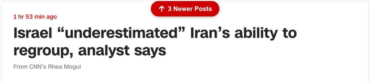 «Они (израильтяне) не учли в полной мере способность Ирана перегруппироваться после того, как израильтяне весьма успешно нацелились на высшее руководство иранской армии и смогли ликвидировать нескольких из них. Израиль предполагал, что дезорганизовал иранское командование и управление, но это мнение было быстро пересмотрено. В настоящее время мы наблюдаем, что иранские ракеты успешно проходят через все уровни израильской системы противовоздушной обороны», — отметил Трита Парси, вице-президент Института ответственной государственной политики Куинси.