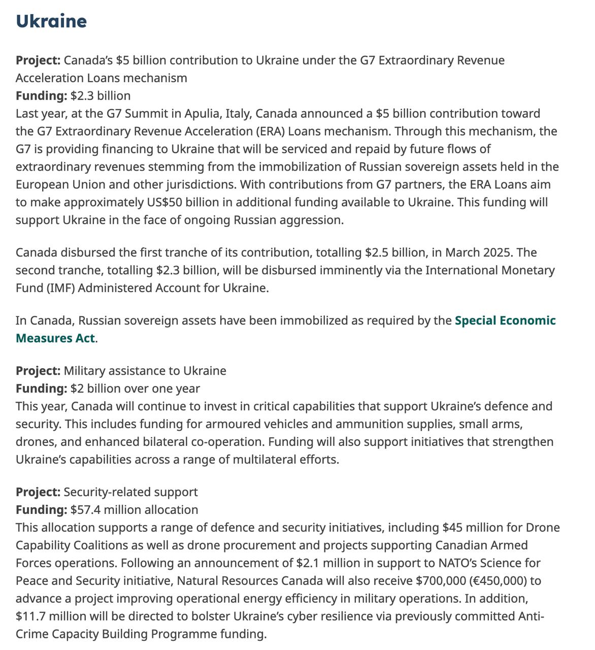 Глава саммита, премьер-министр Канады Карни, отметил, что поддержка Украины была согласована «устно» и упомянута в его личном итоговом заявлении. В этом заявлении было анонсировано выделение Канадой 5 млрд долларов через механизм чрезвычайного кредитования G7.