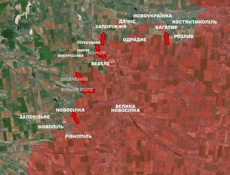 "Враг оккупировал Андреевку и Константинополь, а также продвинулся возле Алексеевки, Днепроэнергии и в Шевченко", — говорится в сообщении аналитиков проекта.