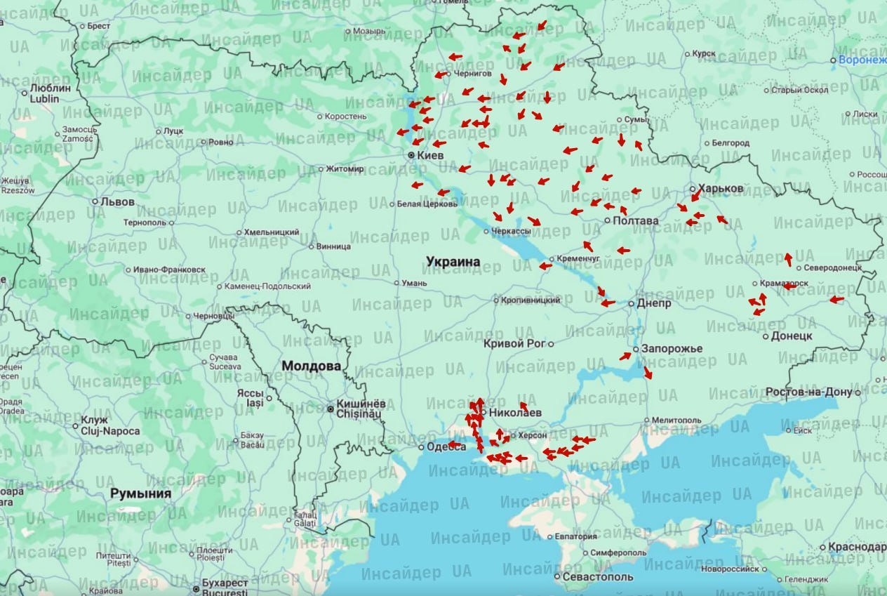 Согласно онлайн-карте воздушной обстановки, в небе зафиксировано более 100 вражеских БпЛА. Воздушная тревога охватывает большую часть регионов Украины. Взрывы также подтвердили в Чугуеве — на месте работают соответствующие службы.