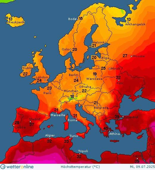 Завтра, 9 июля, Украина окажется среди самых жарких стран Европы. Однако температура воздуха в разных регионах будет очень контрастной.