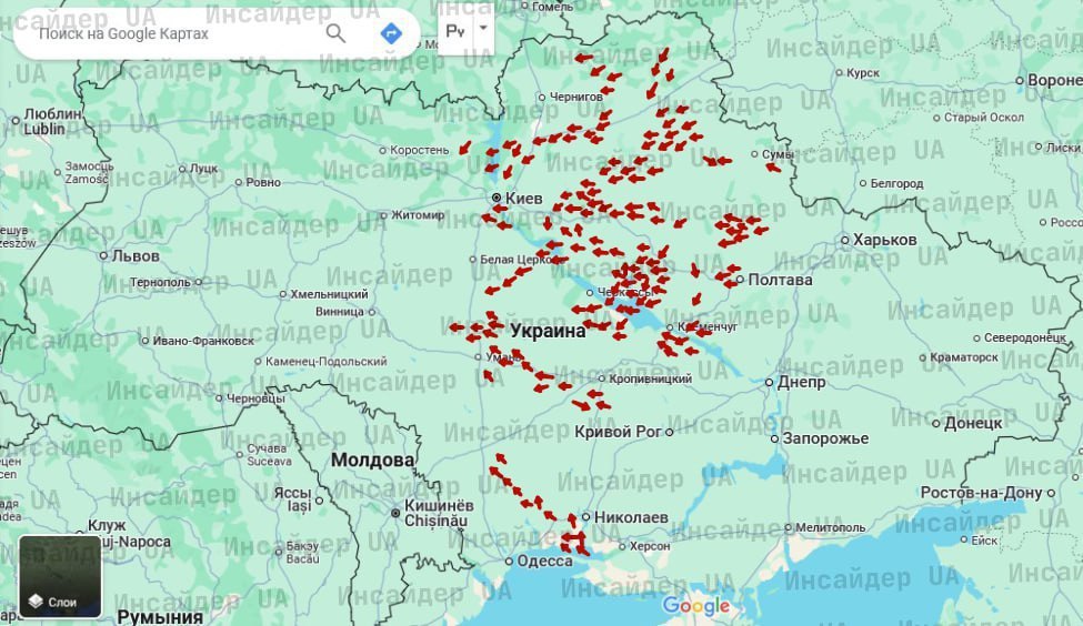 Наблюдаются повторные запуски с разных направлений, так что количество дронов-камикадзе, вероятно, будет увеличиваться в течение ночи.
