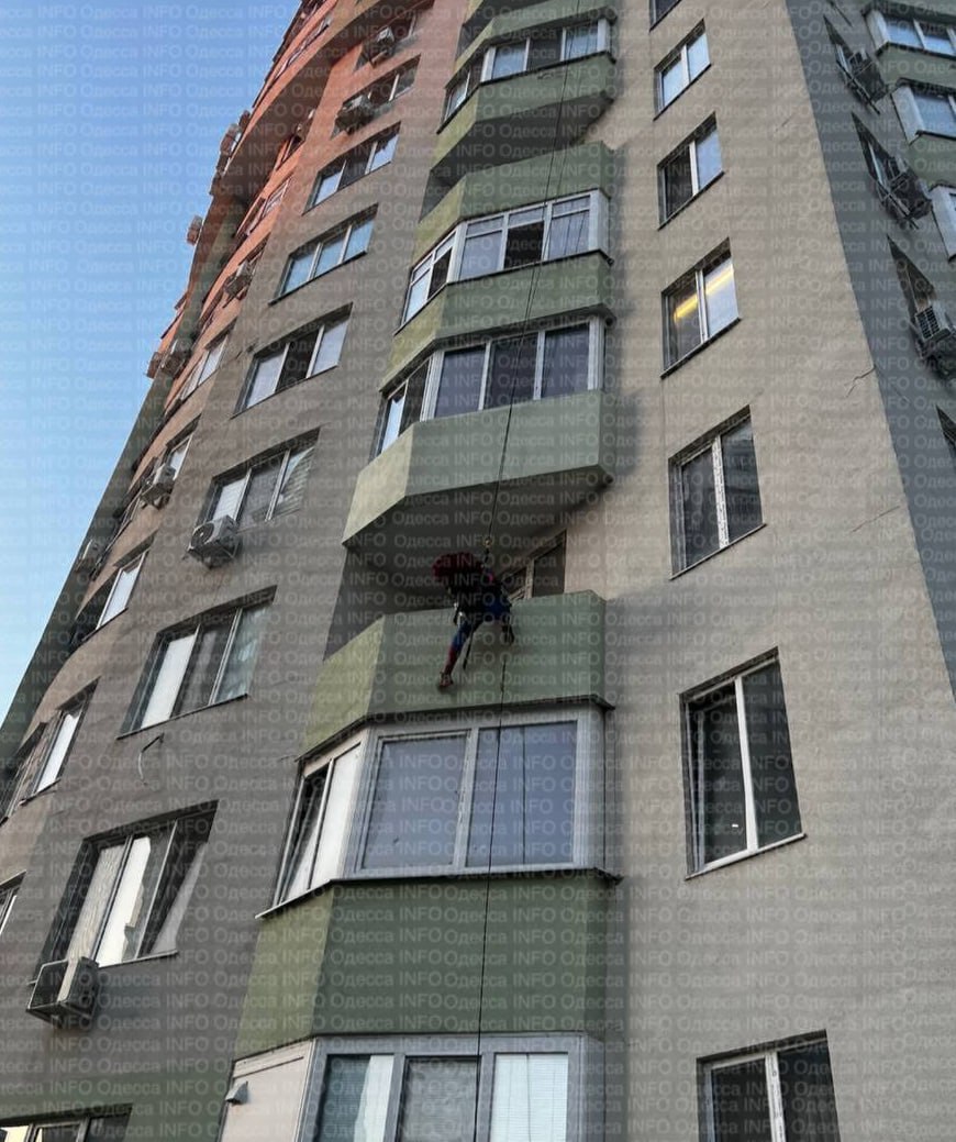 В Одессе “Человек-паук” доставил букет роз через окно многоэтажки