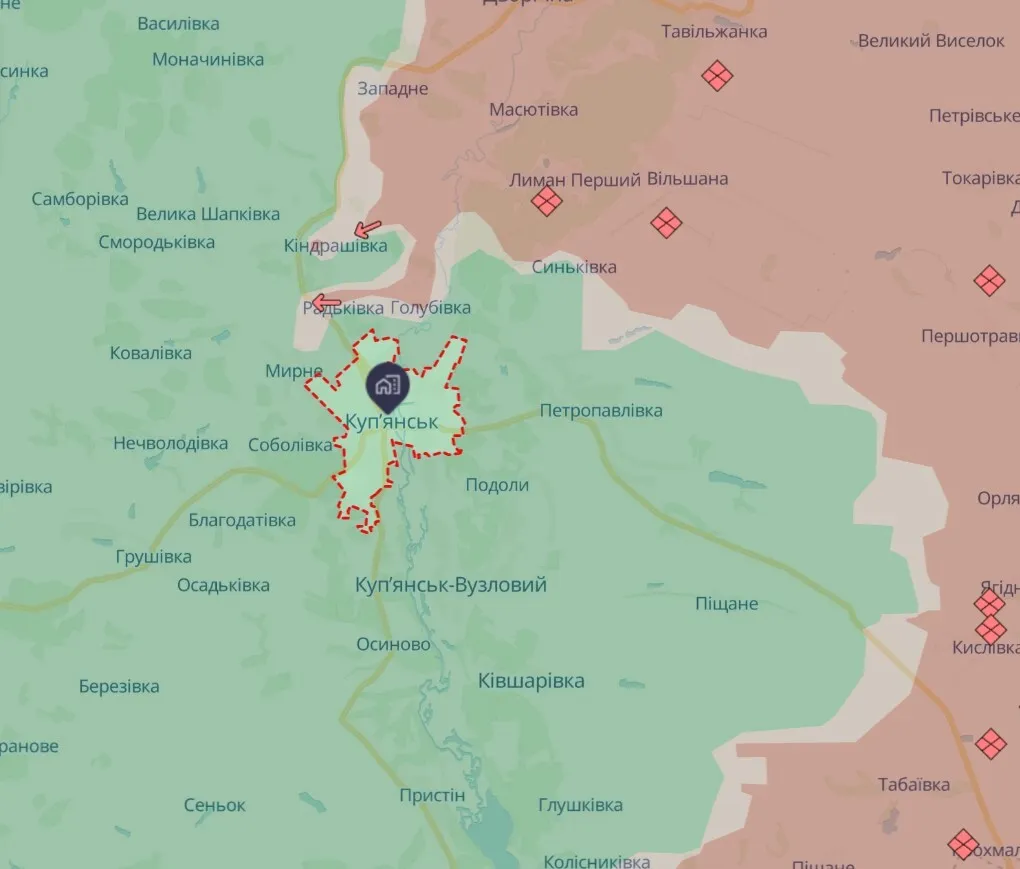 Он начался 23 июня с Голубовки Купянского района и позволил силам РФ взять под контроль ключевую подъездную дорогу на север от Купянска, у Радковки.
