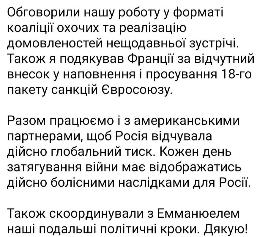Об этом сообщил Зеленский после разговора с французским коллегой Макроном.