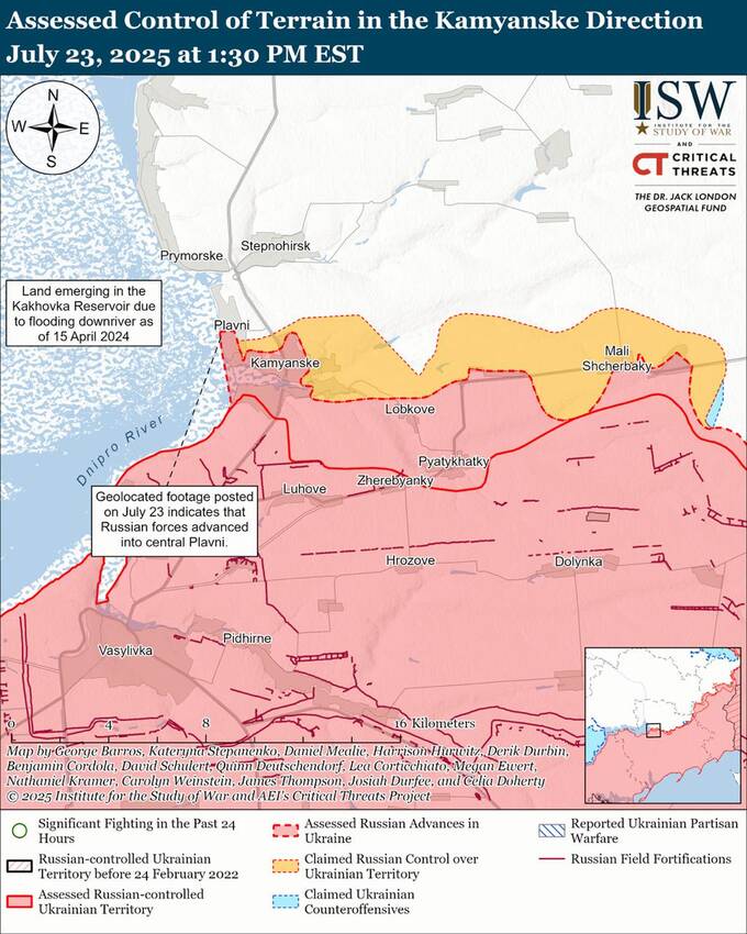 Deep State продвижение россиян на данном участке не подтверждает. Американский «Институт изучения войны» вчера сообщал о продвижении россиян в центре Плавней, который находится северо-западнее Каменского, а также об атаках в направлении Степногорска.