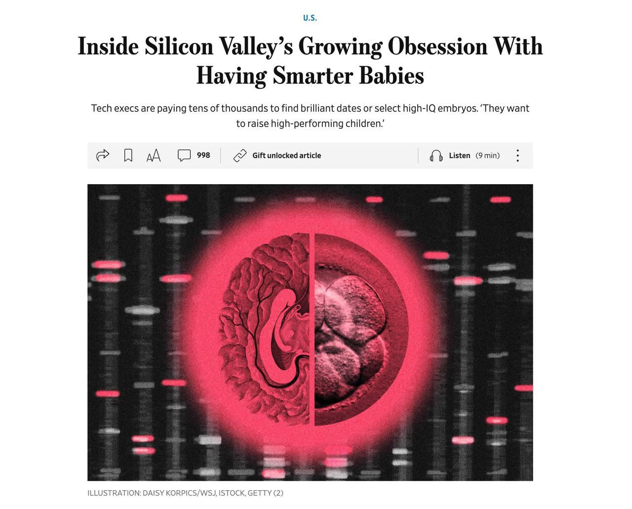 В WSJ узнали, как богатые создают генетическую суперкасту в Кремниевой долине