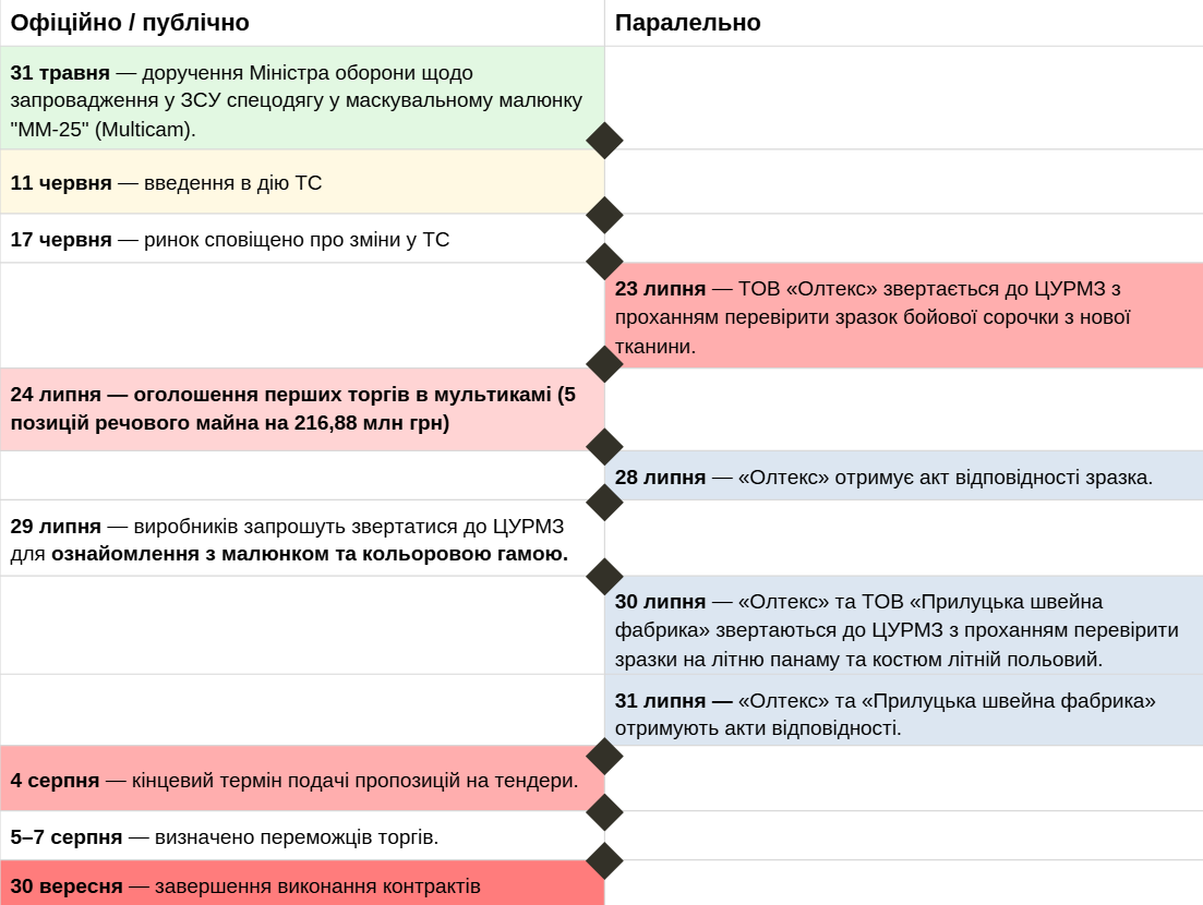 Пока на словах чиновники декларируют прозрачность и открытость, на деле хронология появления нового маскировочного рисунка выглядела как жесткий стресс-тест для украинских производителей. Спойлер – его прошли только две компании из одной группы. Причем одна из фирм начала забег еще до «стартового свистка».