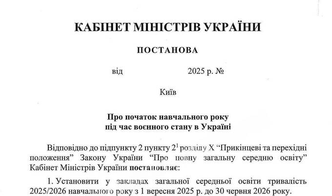 В Украине учебный год 2025/2026 начнется 1 сентября 2025 года и продлится до 30 июня 2026-го. Продолжительность утвердил Кабинет министров на заседании 20 августа.